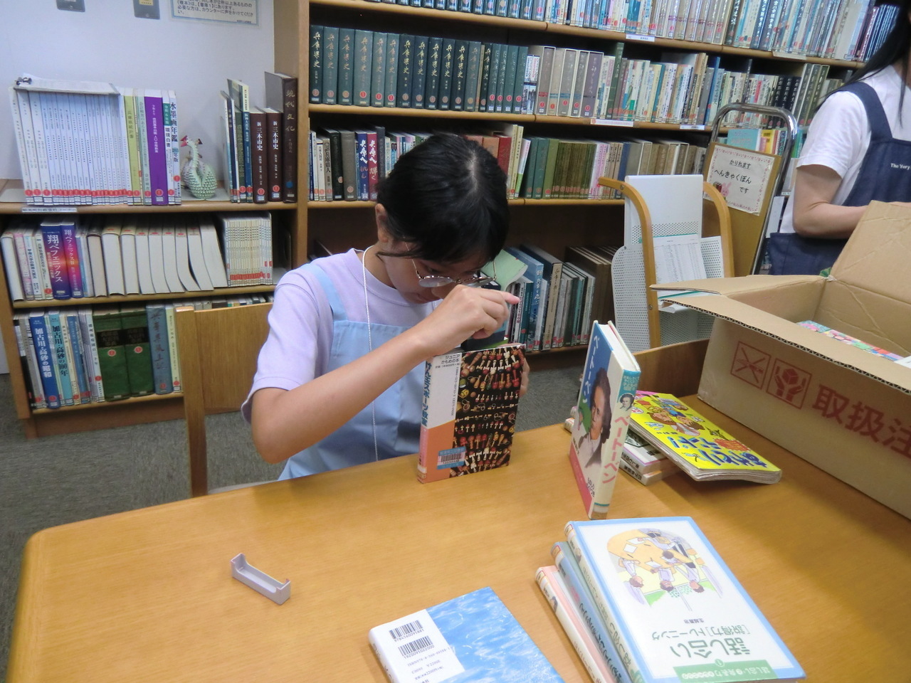 | 内 容 | カウンターでの貸出・返却、資料の配架、 図書のコーティングなどの、図書館の仕事を体験します。 |
